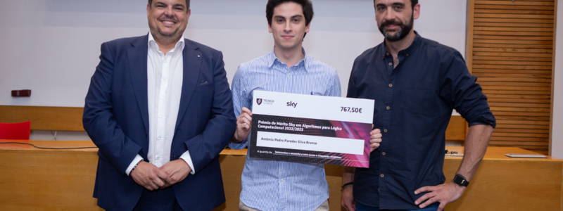 A Sky Portugal distinguiu, dia 18 de maio, quinta-feira, dois estudantes de Engenharia Informática, André Dias e António Barreto, pelo seu percurso de sucesso na unidade curricular de Algoritmos para Lógica Computacional.