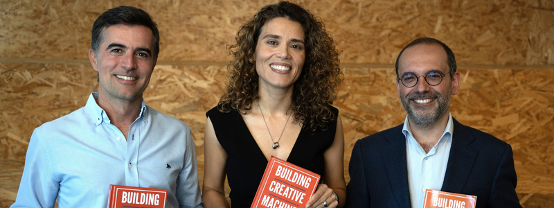 Foi em finais de 2023, durante um almoço onde discutiam o impacto crescente da inteligência generativa, que Gonçalo Perdigão, Filipa Matos Baptista e João Santos Pereira decidiram escrever um livro com as ideias e práticas que já vinham a partilhar entre si. Era uma consequência natural das suas discussões, no que era então o início da comunidade “Building Creative Machines”. Foram motivados pela recetividade positiva de mais de 200 sketches criativos já online, todos em código aberto e gratuitos, e pelos testemunhos de líderes de instituições e empresas de referência (p.ex. Anthropic, Amazon, Harvard, Google, Microsoft e TikTok). Perceberam que era o momento certo para sistematizar o conhecimento e oferecer um guia sobre como as máquinas podem colaborar na criatividade humana.